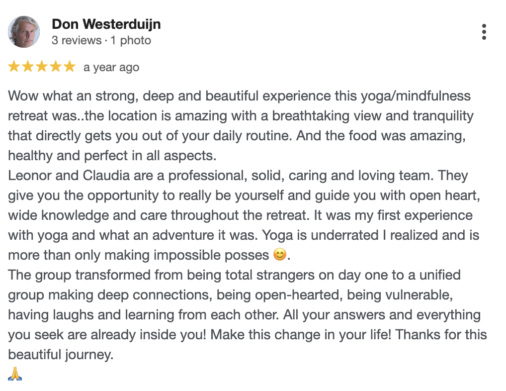 The first thing to do is to secure your spot in this epic spring retreat before it's all booked up. Don't miss out like many guests who no longer could secure a spot in our last retreat! Once you've secured your spot, go ahead and book your flight or other transportation. Let's embark on this journey together 🙂